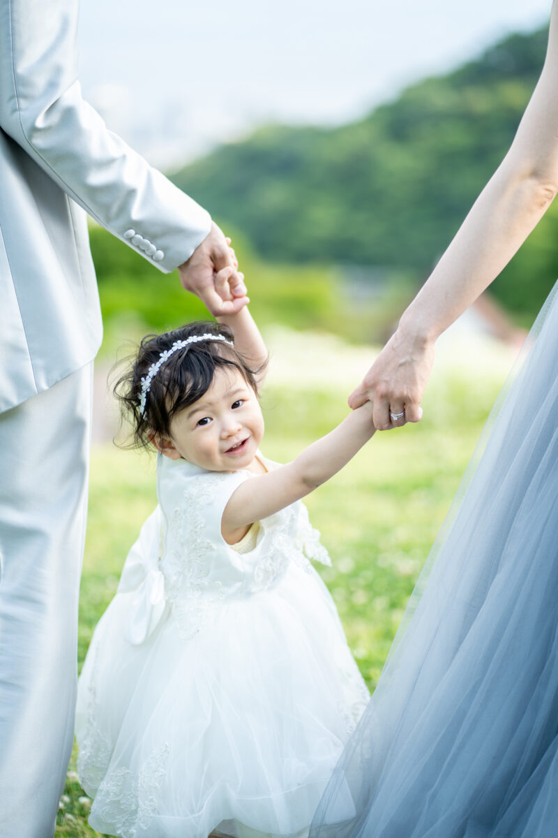パパとママの手をしっかり握って可愛い振り返りショット💕