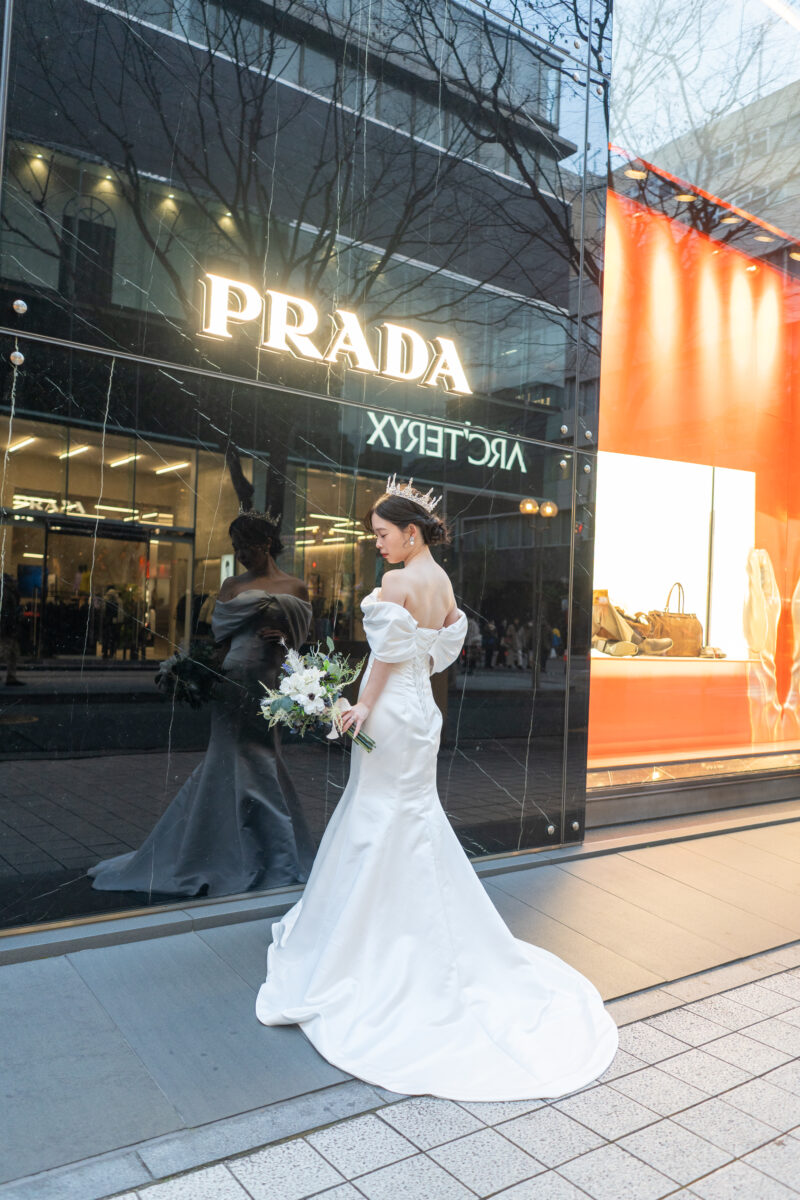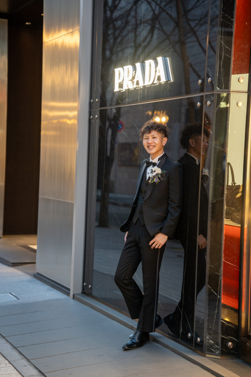 おしゃれな建物を背景に撮影していきます✨モデル並みに美しい!