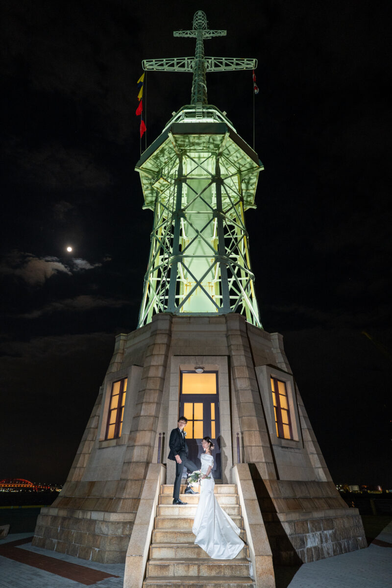 灯台の階段で月夜と共にロマンチックなお二人💕