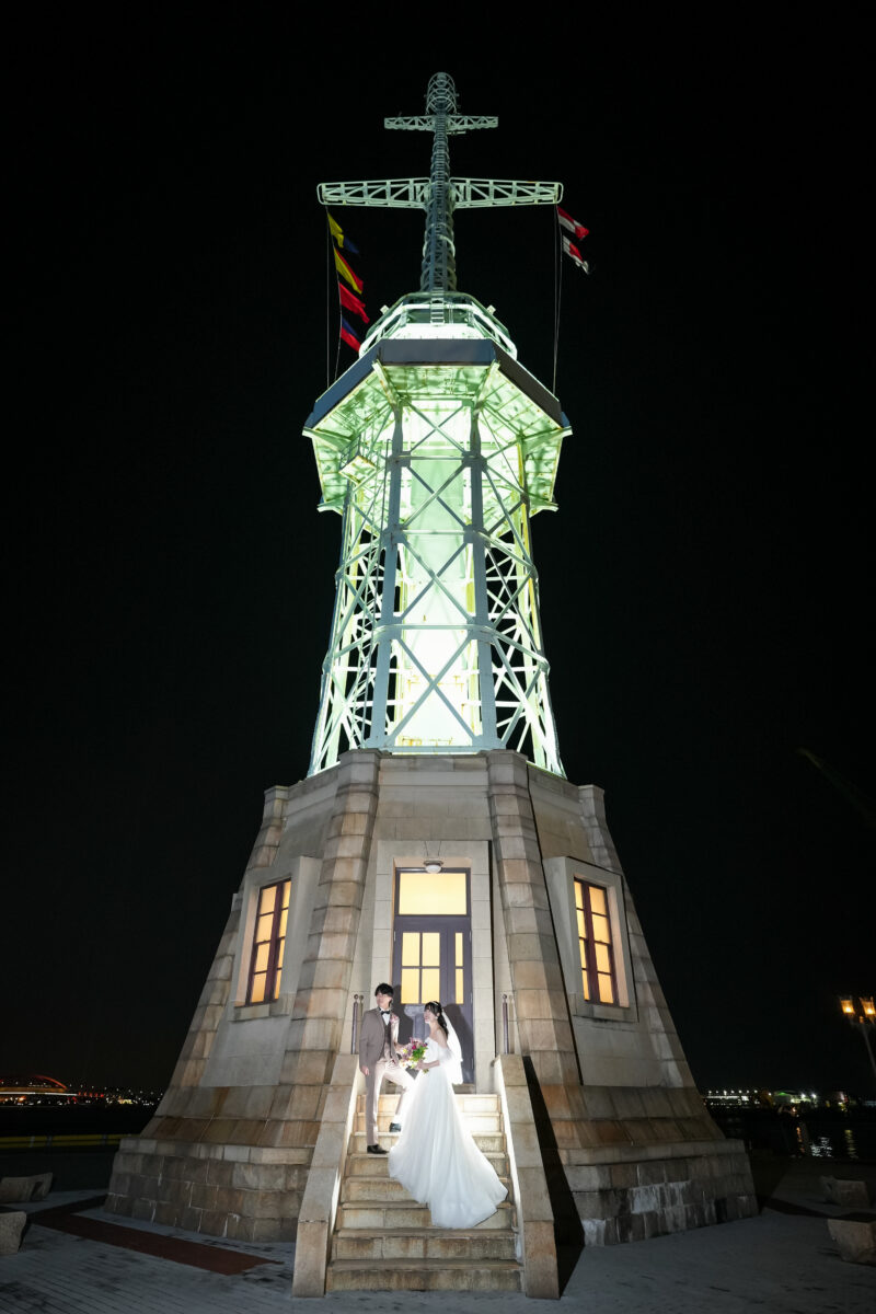 灯台の階段で月夜と共にロマンチックなお二人💕